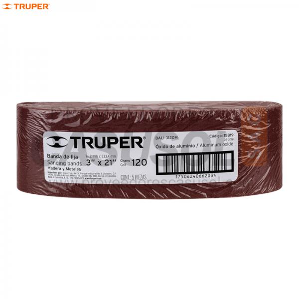 BANDAS DE LIJA 3 GRANO 120 5 PIEZAS TRUPER 15819