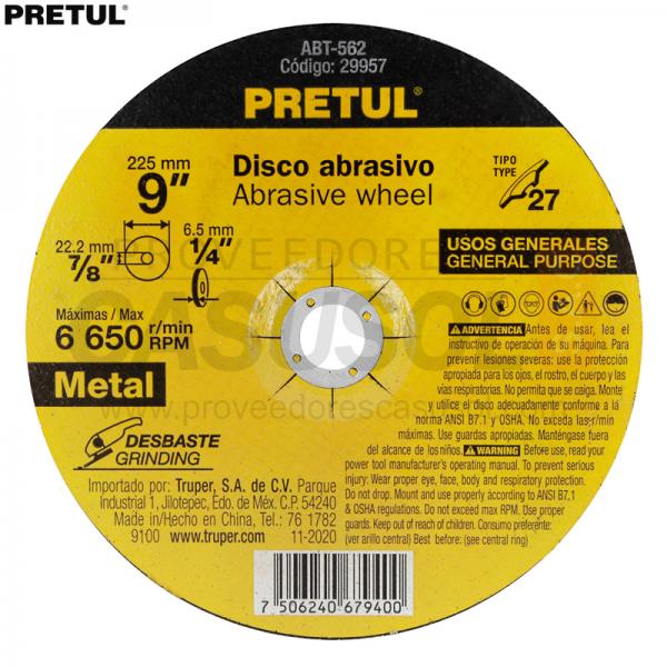 DISCO DESBASTE METAL 9 x 6.2mm PRETUL 29957