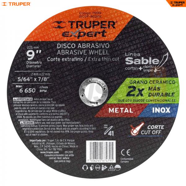 DISCO CORTE METAL Y ACERO INOX 9 x 2mm MAXIMO RENDIMIENTO TRUPER 11999