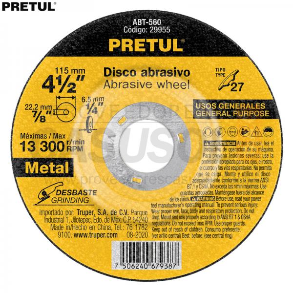 DISCO DESBASTE METAL 4 1/2 x 6.2mm PRETUL 29955