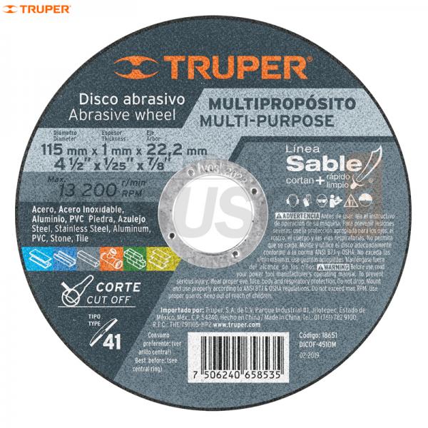 DISCO CORTE MULTIMATERIAL 4 1/2 x 1mm ALTO RENDIMIENTO TRUPER 18651