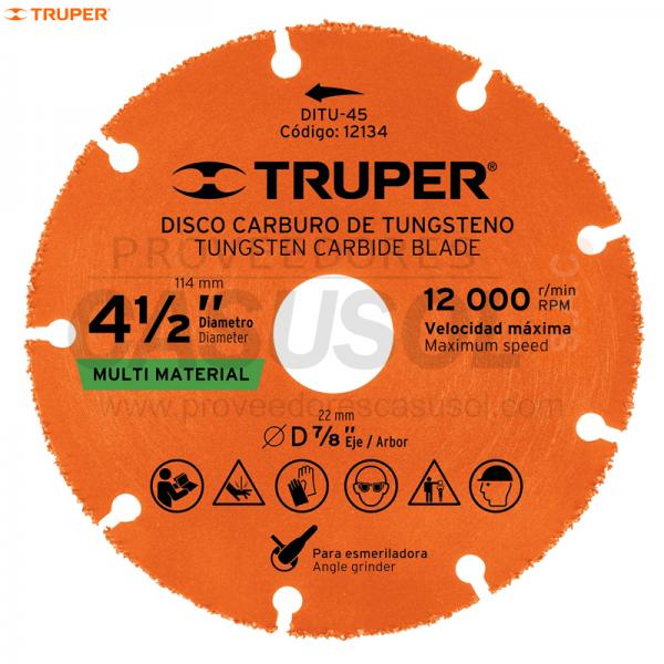 DISCO DE CARBURO DE TUNGSTENO 4 1/2 X 1.2MM MULTIMATERIAL TRUPER 12134