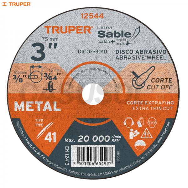 DISCO CORTE METAL 3 x 1mm ALTO RENDIMIENTO TRUPER 12544
