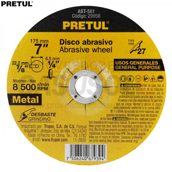 DISCO DESBASTE METAL 7 x 6.2mm PRETUL 29956