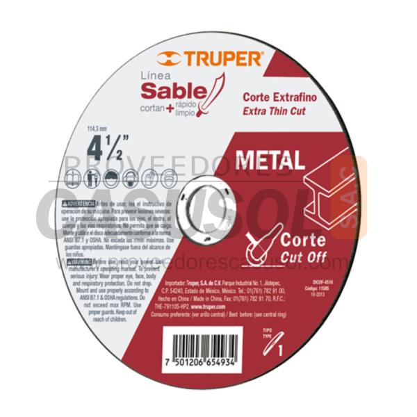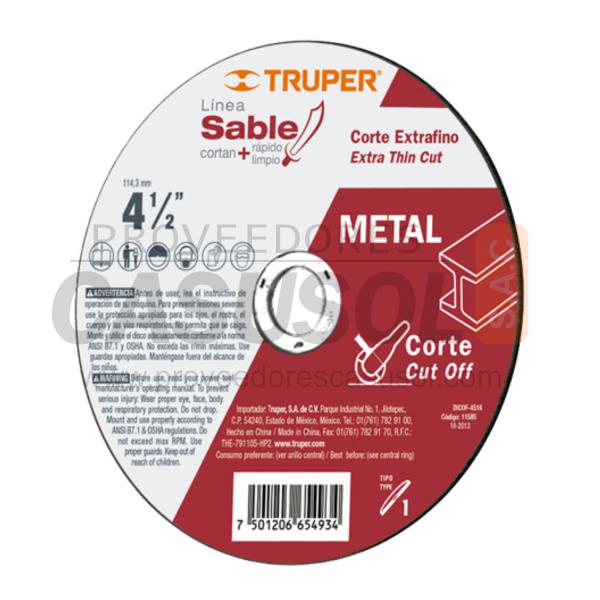 DISCO CORTE METAL EXTRAFINO 4 1/2´´ x 1.6mm ALTO RENDIMIENTO TRUPER ...