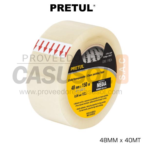 CINTA PARA EMBALAJE COLOR TRANSPARENTE 48MM x 40MT PRETUL 20525
